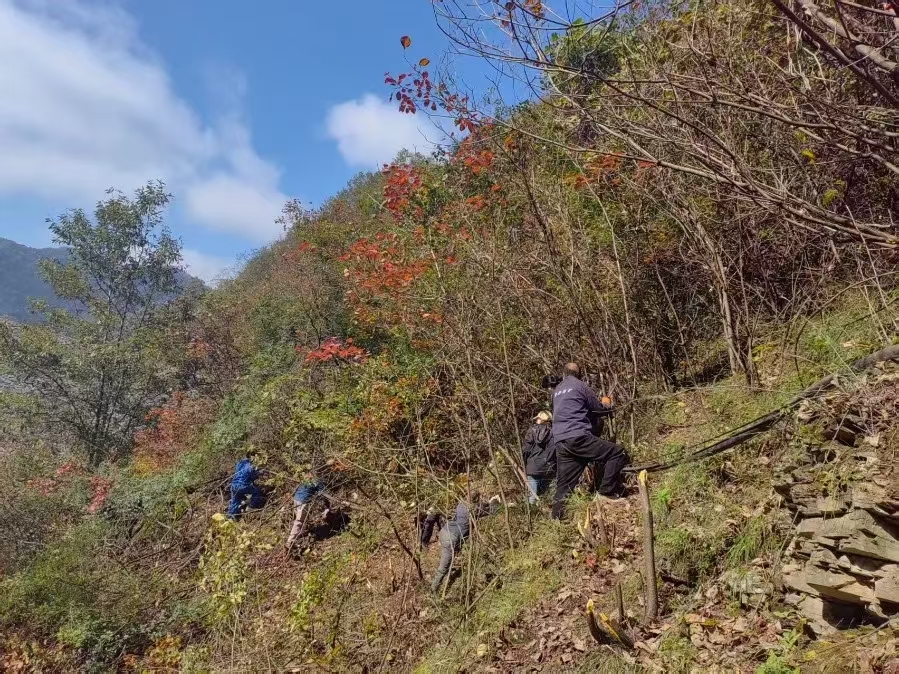 險(xiǎn)情即命令,行動(dòng)顯擔(dān)當(dāng)。面對(duì)復(fù)雜地形與植被纏繞的“攔路虎”,金米黨支部想方設(shè)法、果斷出擊,由黨員帶頭,組織全體在崗人員趕赴現(xiàn)場(chǎng)開(kāi)展義務(wù)整治。他們自帶砍柴刀、繩索等工具,對(duì)嚴(yán)重影響施工安全的荊棘雜草進(jìn)行全面清理。
