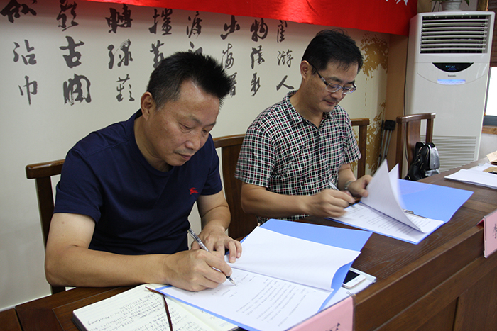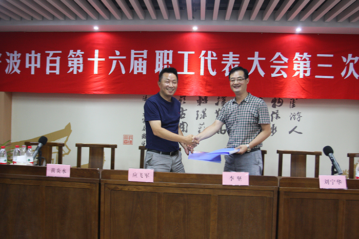 總經(jīng)理應(yīng)飛軍同志作為行政方首席代表與職工方首席代表李堅同志簽署《2017年工資集體協(xié)議》和《女職工權(quán)益保護專項協(xié)議》